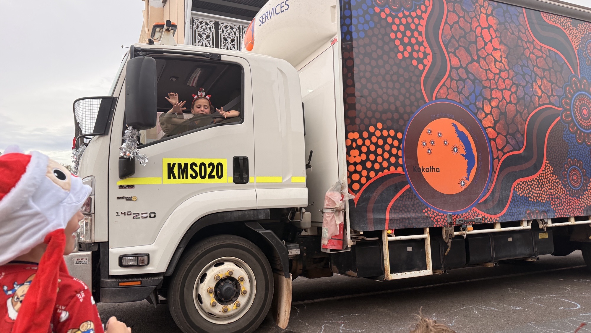 The kids all looked great in their Kokatha tops, designed by the talented Ayana Reid and it was fantastic to see the Kokatha Mining Services truck, with its colourful artwork by Kokatha artist Presten Warren.